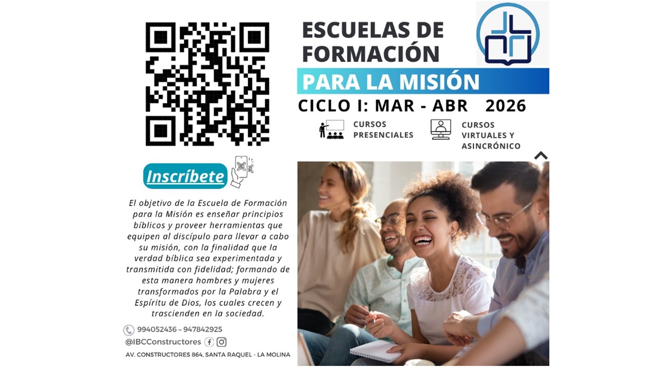 Se parte de un Grupo de Crecimiento. También te invitamos a participar de nuestras conferencias semanales, todos los domingos en tres horarios: 08:00am - 10:00am - 12:00pm, en la Av. Constructores 864, La Molina. Siempre serás bienvenido.
